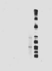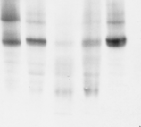 The original picture was scanned and is shown inverted, to improve contrast. The most prominent band has a molecular weight of approximately 135 kDa.